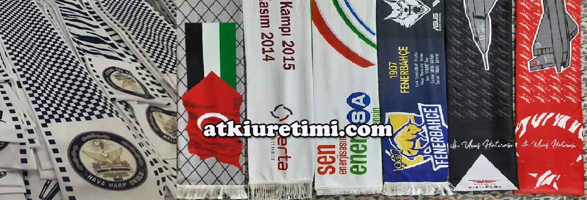 Atkı İmalatı, Talepleriniz doğrultusunda dijital baskı teknolojisi ile çıkmayan solmayan atkı tasarım ve imalatı yapmaktayız. Ajans, Toptancı, Kulüp, Organizasyon, Promosyon ve Festivallerin vazgeçilmezi kaşkol tasarımı ve imalatı, istediğiniz logo arma, resim yazı ve baskılarla imalatını gerçekleştiriyoruz. 1 kalite regüle kumaşlar ile atkı imalatı. İnsan sağlığına zarar vermeyen solmayan, çatlamayan, çıkmayan, yıkanabilen eko-teks baskı.
